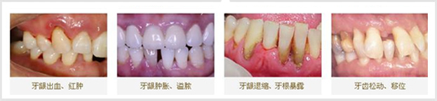 牙龈炎症、出血、牙周袋形成、牙槽骨吸收、牙槽骨高度降低、牙齿松动移位、咀嚼无力,严重者牙齿可自行脱落或者导致牙齿的拔除